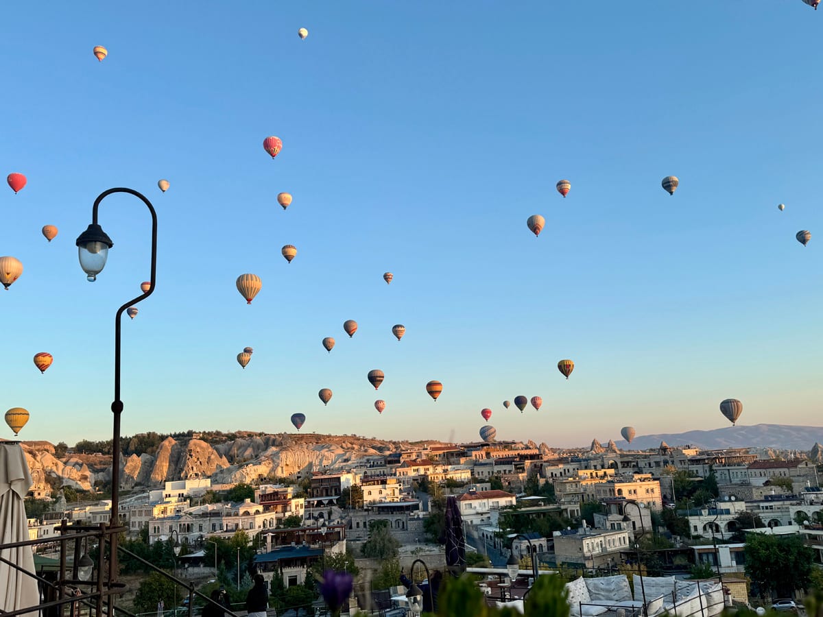 即使不打算坐热气球,或是有惧高症,也完全不必担心会错过风景。卡帕多奇亚主镇格雷梅(Göreme)一带聚集了不少地理位置很好的洞穴酒店,不少自带景观露台,有些甚至在房间推开窗就能看到热气球升空,画面一样梦幻。重点是不用大清早起床,看完直接吃早餐,对懒人非常友好。