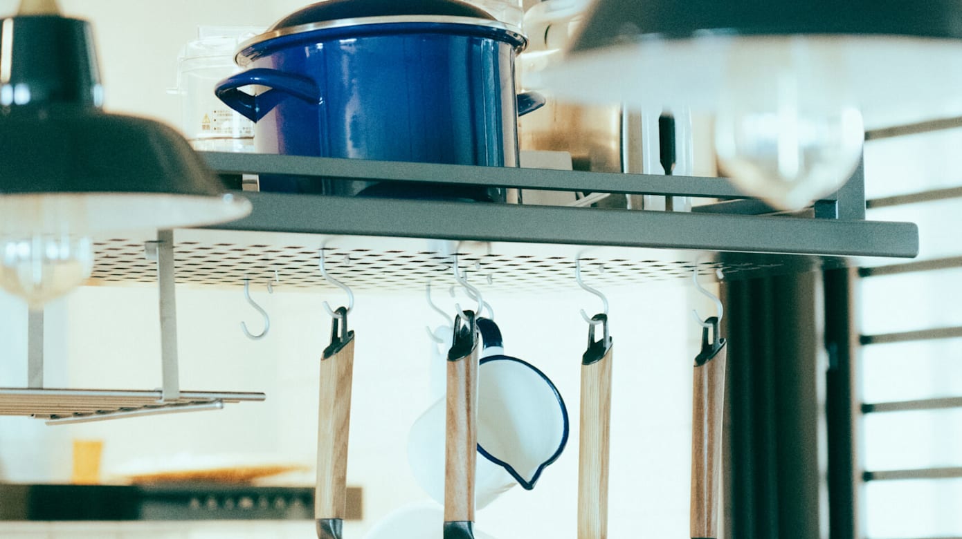 整理,是需要持续练习的过程,我会依序问自己三个问题:Why、Where、How,“为什么而留下?” 之后“要放在哪里?”最后才是“如何收纳?” 核心概念必须从使用动线出发,再搭配使用频率来决定东西该怎么收,以厨房为例,流理台是日常备料、清洁的区域,所以钢盆、砧板等等便以此为中心收纳,锅具、食器摆置瓦斯炉下方橱柜,铸铁平锅则挂在中岛上柜,方便取用又能保持干燥。 确保最常使用的柜体里都是日常必须的对象,再依序扩散分布,跟物品之间的逻辑关系一旦建立,家也就变得很好整理与维持。