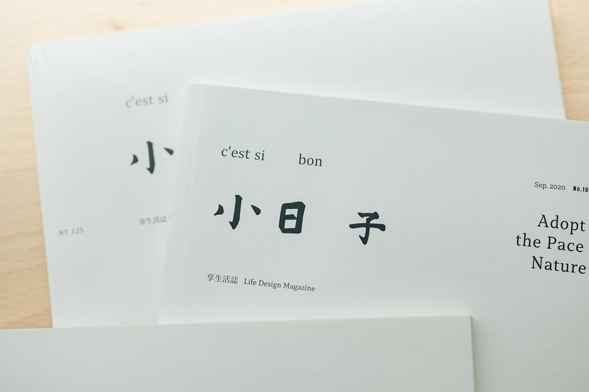 当初 logo 则有多次来回讨论,第一版是配合英文标使用明体,比例较为细长带点时尚气息,他反复思索小小学民的日常,最终定调黑体、明体、楷书所组成的混合体,不是可爱也不会高冷得让人难以亲近。 而问起 logo 小日子中间的空格,他笑说:“想不起来了,应该就是为了好看吧,今天再看这个空格突然觉得它有种神经质的怪,怎样? 我就偏偏要空一格啊,很喜欢,如果规格化的间距看起来就会偏向中规中矩的个性。”